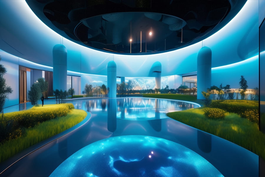 體驗區(qū):以一個圓形的體驗空間作為主要展示形式,利用**全息投影**技術(shù),模擬崇明東灘的不同季節(jié)和不同時間段的景象,如春天的花海、夏天的雷雨、秋天的落葉、冬天的雪景,以及日出日落、潮起潮落等。參觀者可以在體驗空間內(nèi)自由走動,感受崇明東灘的變化和美麗。該區(qū)域的設(shè)計意圖是讓參觀者親身體驗崇明東灘的魅力和動態(tài),增強他們對濕地保護(hù)的情感和責(zé)任。